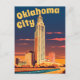 Oklahoma city travel postcard. View on the Oklahoma river passing the skyscrapers.