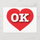 This postcard features a vibrant red heart containing the bold, white, upper case letters OK, the official abbreviation for Oklahoma, the sooner state. The reverse side of the postcard is blank, awaiting your handwritten sentiments or custom text.