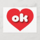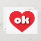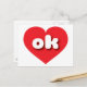 This postcard features a vibrant red heart containing the bold, white, rounded lower case letters ok, a playful abbreviation for Oklahoma, the sooner state.
