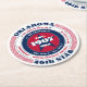 This paper coaster has a patriotic circular typography design with red, white, and blue colours representing the United States of America flag. The text includes the state's name Oklahoma, its capital Oklahoma City, its residents' name Oklahomans, the Southwest region, its time zone(s), and geographic coordinates. Oklahoma was the 46th state to gain its statehood in 1907. It is represented with text as the "46th star" in this design. This paper coaster is great as a souvenir or for parties and businesses. All shape options are available, however, you may need to adjust the design size in the design tool to make it fit correctly.