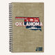 Rustic look grid notebook features retro style scenic Oklahoma state silhouette on a faux burlap background. Personalise with monogram or name