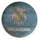 Oklahoma State Flag on Old Wood Grain Plate