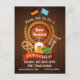 Invitation for Oktoberfest beer festival with a beer barrel with emblem style leaves, pretzel, sausage with the German flag and Bavarian flag on the top to celebrate Oktoberfest in the fall.