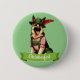 A Green Round Button Pin For Oktoberfest Designed With German Shepherd Dog Dressed In Oktoberfest Attire