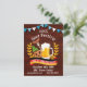 Invitation for Oktoberfest beer festival with a beer mug, pretzel, sausage, a ribbon banner with the German flag colours, Bavarian flags on the top to celebrate Oktoberfest in the fall.