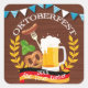 Oktoberfest beer festival with a beer mug, pretzel, sausage, a ribbon banner with the German flag colours, and Bavarian flags on the top to celebrate Oktoberfest in the fall.