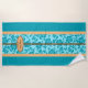 okuleia Hawaiian Faux Wood Monogram Surfboard Teal Beach Towel