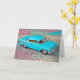 Retro turquoise 1957 car on road map for boss on Boss's Day