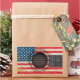 This unique design features a close up of the sound hole and strings of an old acoustic guitar with the flag of The United States painted on to the body. The six string guitar has an aged and worn look and is covered with scratches and scuffs which gives it a well used feel with lots of personality. This stylish design is perfect for guitarists, musicians and music lovers who want to show off their American pride.