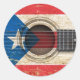 Old Acoustic Guitar with Puerto Rico Flag Classic Round Sticker
