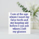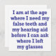 I am at the age where I need my false teeth and hearing aid before I can ask where I left my glasses.