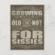 Growing old is not for sissies. A perfect typographic postcard for the far away friends! Let's face it, getting older makes you grow a thick skin, as it's plum stocked with aches and pains and creaks that were never there....