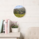 A scenic photograph of an old barn in North Carolina with the Blue Ridge mountains in the background. You may personalize this clock with your a message or name using the customization tool.