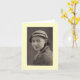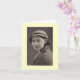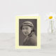 This retro note card will really stand above any other note card, it has an original and unique old photograph of a beautiful lady from the 1930’s approx. The black and white head and shoulders photo shows “Elizabeth” (her actual name) posing and smiling, she’s wearing her best hat and her winter coat. she isn’t wearing a lot of make up, just a little lipstick. Elizabeth wasn’t wealthy, she was a servant for a “big house” she’d moved down from the North to earn money to send back home to her mother and family. During the second world war Elizabeth became a riveter, a job she loved. After the war she married and had five children. I think Elizabeth would love to know that this photo is on these note cards and that everyone who receives the card will know a little bit about her, and will see her beautiful smile. This is a blank note card for you to add your own personal hand written message.