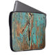Old blue paint on wood laptop sleeve