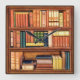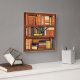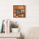 Custom wall clock featuring a vintage illustration of colourful old books on wooden bookshelves. A fun clock for study or the room of an avid reader, teacher, librarian, writer, or any book lover.