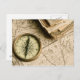 Old Compass Over Ancient Map Postcard