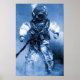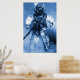 old diver with brass helmet blue colour poster