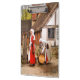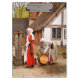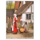 Two Tudor ladies washing water tubs at the water pump. England UK.
