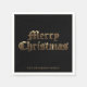 Old English Lettering Merry Christmas Party Black and Gold Napkins, with Faux Gold Old English Typography and your text.