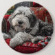 Old English Sheepdog Christmas Festive 6 Cm Round Badge