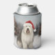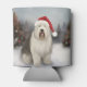 Old English Sheepdog in Snow Christmas Can Cooler