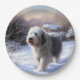 Old English Sheepdog Let It Snow Christmas Paper Plate