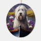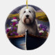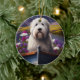 Old English Sheepdog on Paddle: A Scenic Adventure Ceramic Tree Decoration