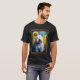 I give wanted to give this a 4 instead of a 5 because these Basic DARK T0shirts run unexpectedly SLIM or Narrow. Which is great if you do not have a potbelly, but I have a paunch. It isn't the shirt's fault that I've got a beer belly. The design and shirt itself is a quality cotton shirt. The color is more of a deep purple, but still a very pretty color. The Basic DARK T-shirts run a bit SLIMMER than the Basic Ts. The neck is a fraction narrower (or seems to be narrower) also. I'm a paunchy middle-aged woman and my neck is 12 inches (31cm) thick and the neckline fell about the same as in the photo of the man, and I had the desire to tug it a bit. So if you're a thick necked man or like loose shirts, be aware these are slimmer shirts. Once I get rid of my lockdown paunch it'll look great. The shirt washed well in cold water with no apparent bleeding. We don't have a dryer, so it hung dry. Did not shrink. Love the colors and the design. The design looks smaller on my shirt than it does on the model on-line. But still, it looks good on the shirt. The printing looks as it does on the model, just the size seems fractionally smaller. Washed garment in cold water, hung dry and design appeared unaffected.