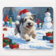 Old English Sheepdog Running in Snow Christmas Hat Mouse Mat