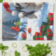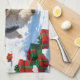 Old English Sheepdog Running in Snow Christmas Hat Tea Towel