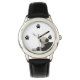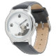 A watch with a picture of an Old English Sheepdog and paw-prints in place of 12, 3, 6, and 9.