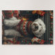 Old English Sheepdog With Christmas Gift Fireplace Jigsaw Puzzle