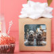 This festive design captures the joyful spirit of the holiday season, featuring an adorable dogs.Nestled in a winter wonderland, complete with a decorated Christmas tree, and beautifully wrapped presents. Snowflakes gently fall, adding a magical touch to the scene, while the vibrant colours of the holiday decorations create a warm and cheerful atmosphere.