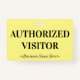 This classic badge design features the message "AUTHORIZED VISITOR", and a customisable company name or other custom message. A badge like this could be used to identify that somebody at a workplace or business is an authorised guest/visitor. [~Z0000307]
