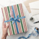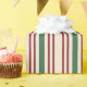 A vintage style Christmas stripe pattern of cream, dark red, and green, decorates this festive holiday wrapping paper. The design is from original art.