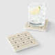 Old fashioned Country Christmas Trees Stone Coaster in beige. In black with white shading: Christmas trees in pots with old fashioned candles, and the words "It's a Country Christmas" in two types of typography.