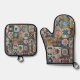Old-fashioned Patchwork Quilt Design Oven Mitt & Pot Holder Set
