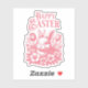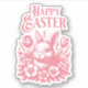 Vintage Styling, Soft Pink Bunny with Flowers. Cute Sticker for Easter Parties, Egg Hunts or Treats.