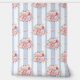 This pretty wallpaper has a pattern of blue and white stripes with arrangements of old fashioned pink and red roses on top. It would look lovely in a bedroom, bathroom or even a little girls nursery!
