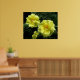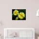 This poster is decorated with three lovely blossoms of an old fashioned golden yellow rose set against a background of green. The heavenly scent perfumes the garden.