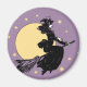 These graphic tees and other items are adorned with an image of a prim and proper looking witch flying on her broom against the moon and stars.