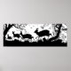 Old German Engraving of Fleeing Deer in Forest Poster