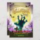 Old Graveyard, Zombie Hand & Bats Halloween Party Invitation