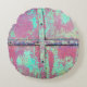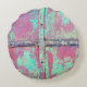 Old green painted wall with rust texture. Grunge r Round Cushion