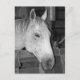 Black and White photo of a grey horse standing in a barn in Oklahoma