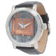A rusting grunge metal house numberal plaque 87 on an old wooden door, a close up photo, beauty in decay, taken by Katho Menden. This leather watch for men with dial-plate is a gift idea for vintage fans. http://www.zazzle.com/kathom_photo