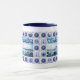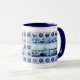 Vintage Old Holland Dutch Delft Blue/ Delftware-look Style Tiles Mural Mug. Vintage view on Amsterdam Holland Dutch Delft Blue/ Delftware style tile mural coffee mug with an old 18th century maritime view of trading ships at the city of Amsterdam and tiles with pictures of an umbrella man on a rainy and windy day at the windmills, Amsterdam Skinny Bridge, Dutch wooden shoes, bitterballen, Dutch windmill, compass tiles and a boat sailing.