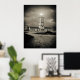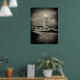 Old lighthouse on a storm night poster