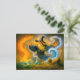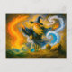 Old mage mastering the four elements in oil holiday postcard